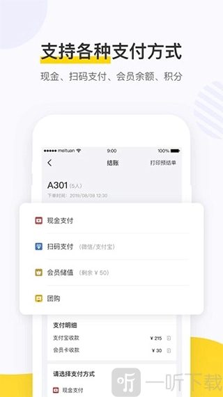 点餐助手免费版是北京三快在线科技有限公司开发的美团餐饮手机系统,这款软件便捷实用,既能显著提升商家的工作效率,也能加快顾客的点餐速度,还支持现金、扫码支付、会员余额等多种支付方式,有需求的朋友可别错过啦。