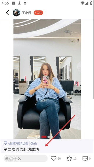 4、在内容详情页,可查看美发体验的图文信息,同时使用点赞、收藏等功能与内容进行互动。