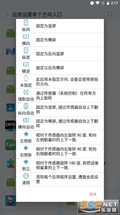 屏幕旋转管理功能,能够协助用户对屏幕方向进行调控,支持强制设置为横屏或竖屏显示模式。