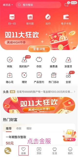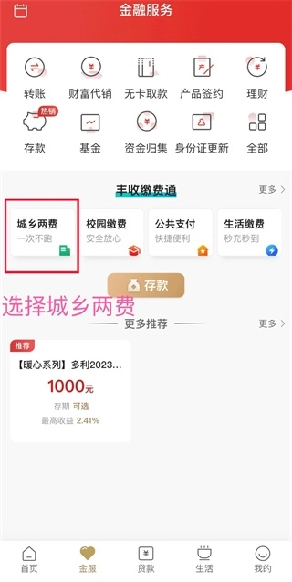 进入丰收互联,点击金服