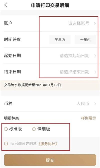 按照提示,先挑选对应的存折或借记卡,接着选定要打印的日期,再选择标准版或者详细版,之后完成电子邮箱绑定与人脸识别操作,最后校验取款密码就可以了!