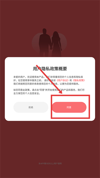 1、在“用户隐私政策概要”弹窗,点击【同意】按钮,确认协议以进入应用流程。