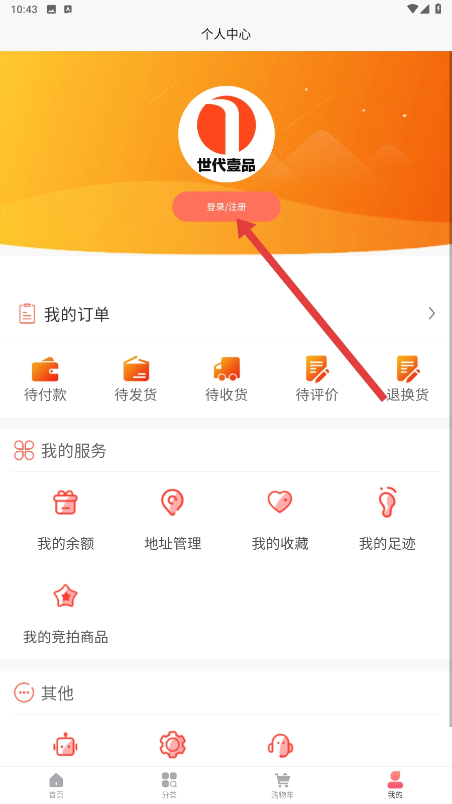 3、进入“我的”界面后,向上滑动查看,若显示状态为未登录,点击登录按钮,跳转至登录界面即可。