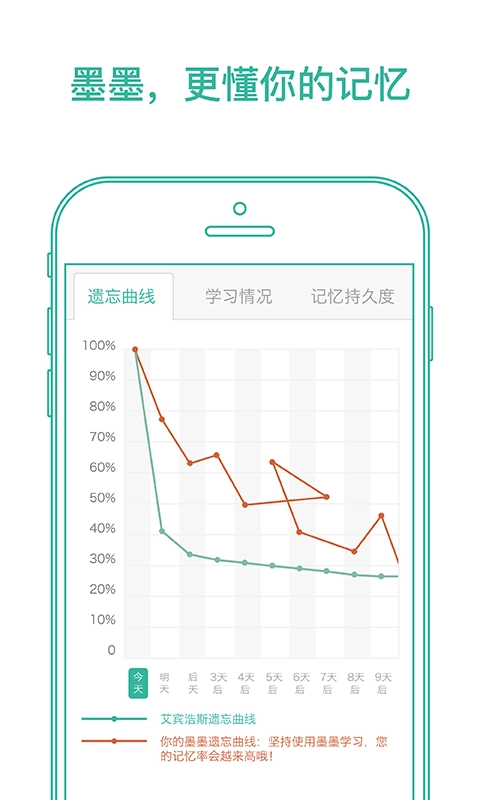 遗忘曲线能切实体现出你在不同阶段对所学单词的遗忘程度。