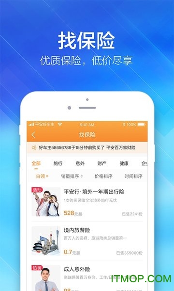 在线选购各类精选保险,涵盖财产险、旅行险、意外险、银行卡盗刷险等多种险种。