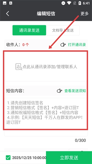 3、还提供定时发送功能,可预设发送时间,确保信息在最佳时机送达。