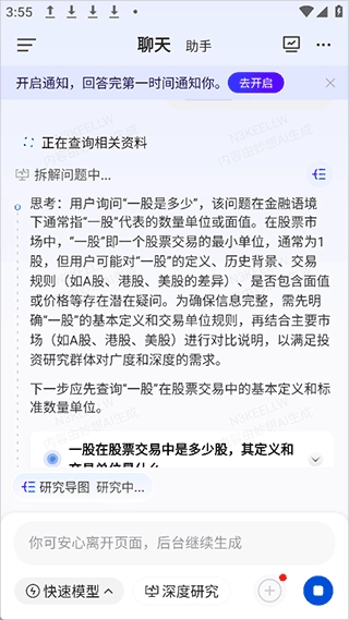 2、感觉回答不太满意,还可以点击深度研究一下,它会深入地给你分析问题
