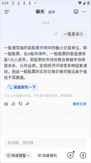 1、打开登录东方财富妙想软件后有什么炒股问题就直接问它