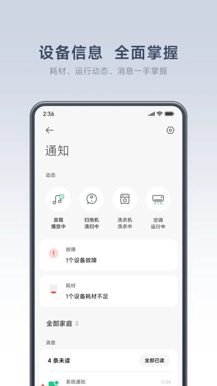 优化通知中心内动态的显示效果,并支持忽略耗材和故障
