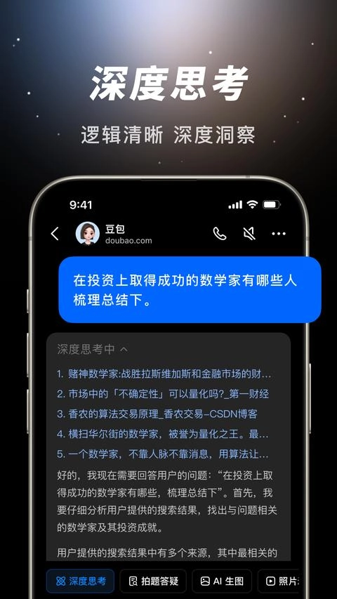 用户在聊天框内输入相关问题,豆包就会对该问题进行解答。用户可以对豆包生成的答案进行点赞、点踩,或者让它重新回答,以此帮助豆包完善回答能力。豆包具备语音播放功能,这意味着它给出的答案并非只有文字呈现这一种形式,还能够同步进行语音播报。