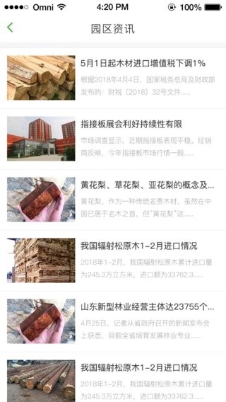 园区信息覆盖范围广泛,其中包含木材进出口的交易趋势。
