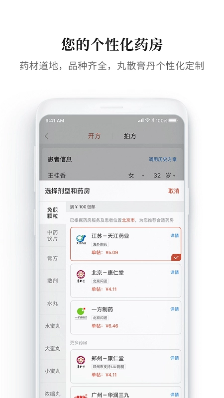 4、新增药房留言,让您对方案抓药的特殊嘱咐直接传递给药房;