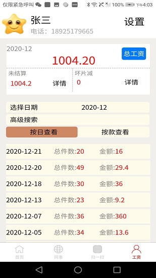 利用软件对每位同事的工作信息进行记录,并依据工作量来核算工资。