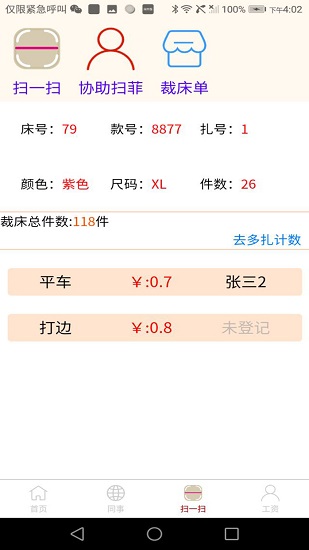 简单算这款服务型工具功能强大,能让机器多干活、减少人力投入以降低成本:它方便员工给原料编辑条码并打印,扫码即可登记生产流程并上传云端,便于查看生产进度;数据统计时支持“扫一扫”功能,扫码就能记录床号、颜色、尺码、件数、扎号等信息,轻松整理数据;系统还会自动归类数据、制作报表,利于数据分析和掌握每日办公情况;员工关心的工资问题也能通过平台“工资查询”快速了解每月工资数据,方便管理个人薪资。
