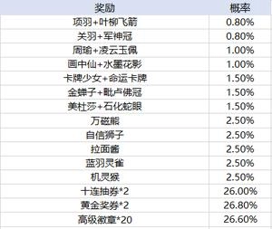 活动期间,每充值60钻石就能领取一个军师礼包,礼包内含司马懿、神白泽、蝎尾狮、末日神罚、阿修罗、利维坦、通灵之眼、哪吒、巴风特、牛奶兔、茉莉茶兔、黑魔隼、灯神鹦鹉、生肖・虎、十连抽券*2、黄金奖券*2、钻石*60中的任意一种奖励~