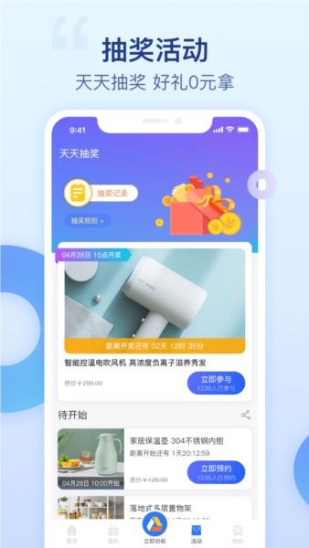 天天抽奖活动:用户每日都能免费参与抽奖,丰厚超值的奖品正等待着大家来领取。