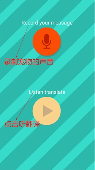 首先点击录音图案的按钮,采集宠物发出的叫声,接着点击下方的按钮收听翻译,如此便能和宠物进行交流了。