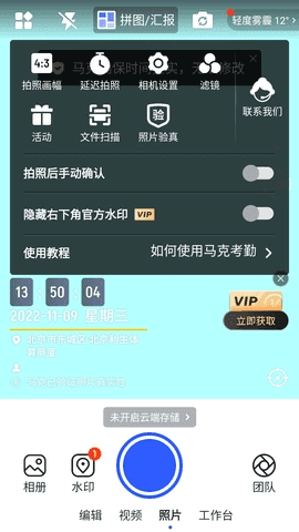 1.【悬浮水印】支持水印悬浮拍摄,拍摄界面选择水印,直接看效果