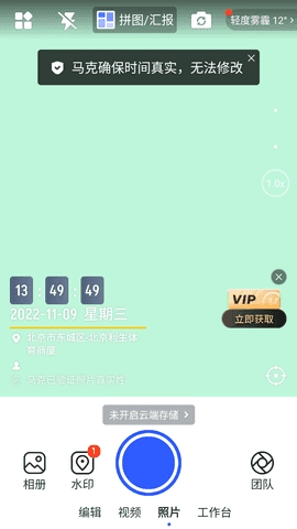 2.打卡水印丰富,涵盖天气,时间,定位,经纬度,海拔。真实还原工作或生活场景。