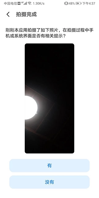 3、拍照后台完成,界面无显示,状态栏有提示;