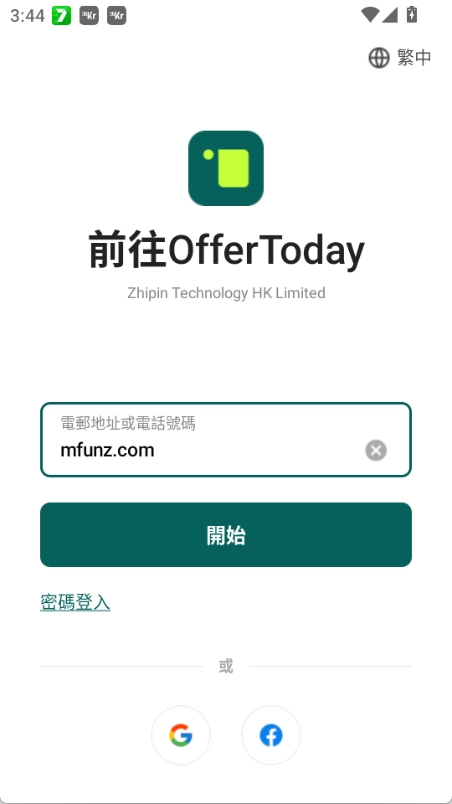 1. 启动OfferToday应用,接着输入电子邮箱地址或者手机号码,最后点击“开始”按钮