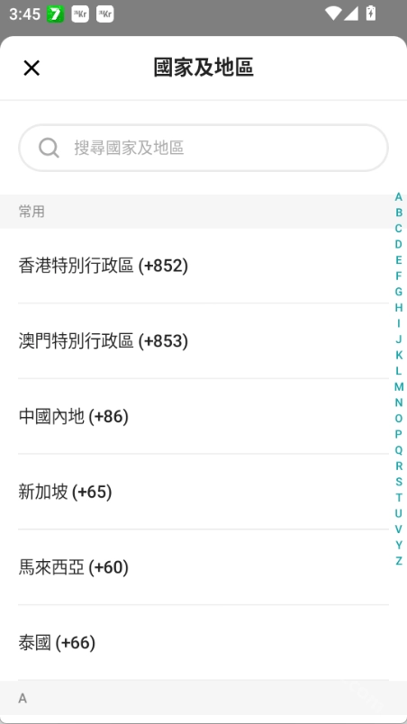 2.若使用手机号注册,需先点击左侧的倒三角形符号来选择对应的国家和地区。