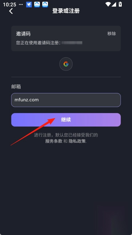 2. 若没有谷歌账号,可输入邮箱并点击“继续”,随后填写邮箱收到的验证码,即可完成注册。