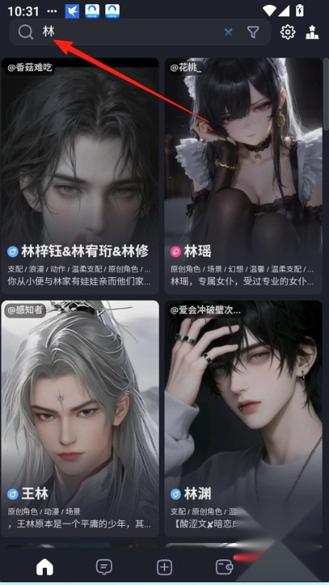 1.直接在首页顶部,搜索角色用户名即可