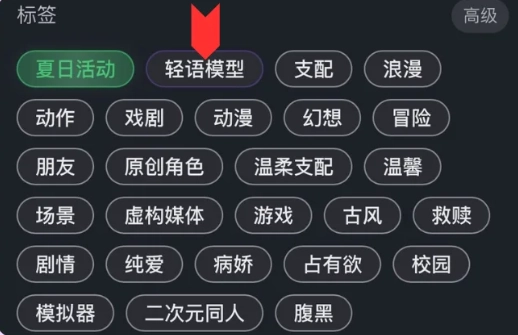 1、进入角色选择界面,点击【轻语模型标签】