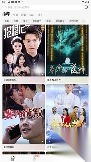 1、安装完番茄短剧后,打开进入首页就能看到各类短剧推荐,挑选自己感兴趣的内容轻轻点击就能开始观看了。