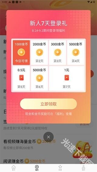 4、每天观看剧集达到指定时长可领取金币,金币累积至相应数额即可提现,新用户还能享受七天签到福利