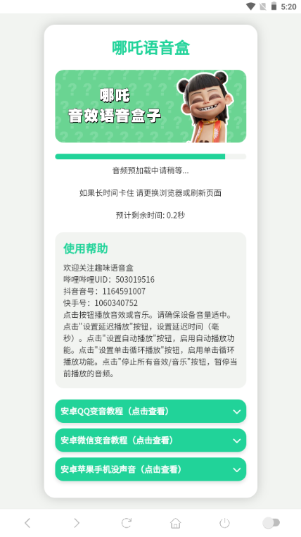 哪吒语音盒是一款全免费且的哪吒专属经典语录盒子。打开哪吒语音盒每一个语音包都显示了详细的文字信息,点击即可自动播放该语音包的内容。最搞笑的事在哪吒语音盒最新版本还有多首哪吒声音的歌曲,还支持自定义设置延迟播放、自动播放以及循环播放等多种播放模式!
