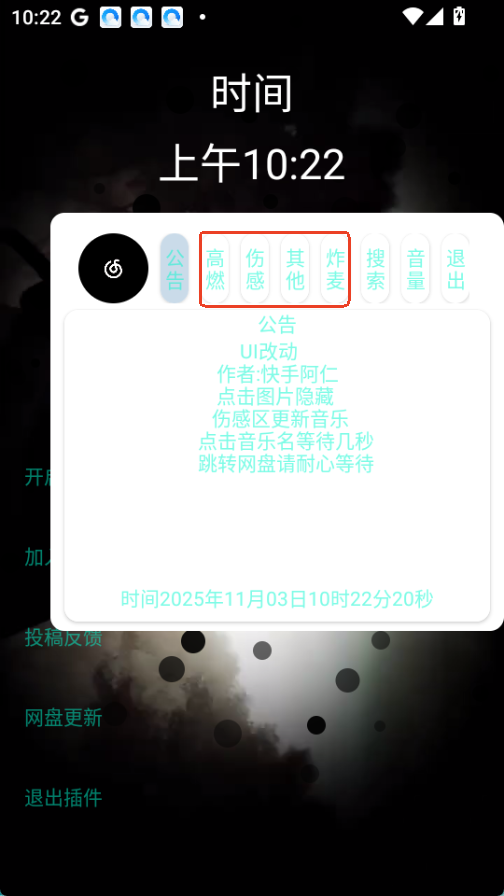 1.打开音乐插件,然后点击开启悬浮,授予悬浮窗权限