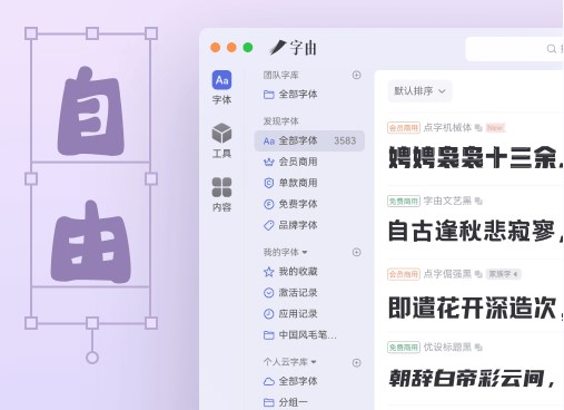 新增功能:个人云字库新增分组拖拽排序功能优化团队版客户端配置功能个人云字库/企业字库新增批量分组功能搜索栏新增复制选中文本功能优化字体包文件存储,提升字体激活速度