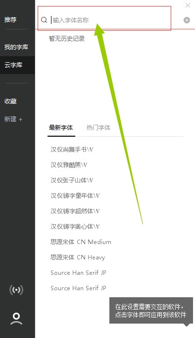 3、点击左上角“搜索”,输出想要查询的字体,便可立即查询到并使用;