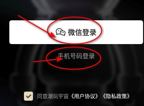 1. 第一步先安装潮玩宇宙应用,打开软件后,登录方式支持微信登录或者手机号码登录。