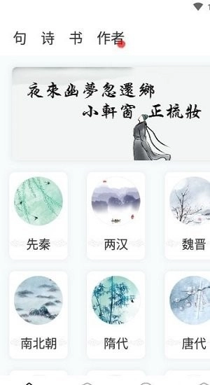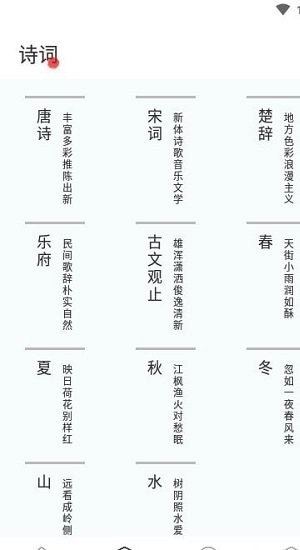 功能会自动留存用户浏览过的诗词文学作品,方便后续快速发现并查看更多相关的文学内容。主题设计精美绝伦,这款软件的主题打造得十分精致,能让每位用户仿佛沉浸在如诗如画的诗词天地里。