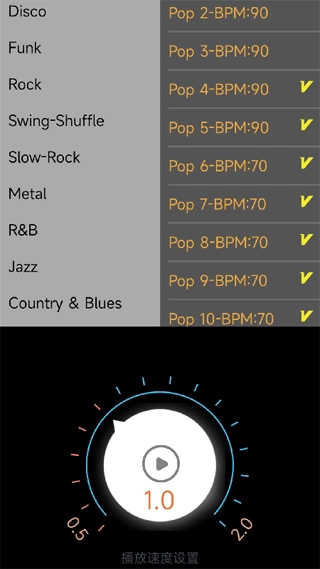 3、支持添加歌曲和选择节拍模式,让用户在真实的音乐环境中练习。