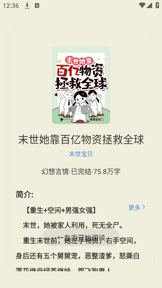 这是一款专为小说爱好者打造的阅读神器,平台内资源极为丰富,涵盖了各种各样的小说类型,大家可以随心挑选自己喜欢的书籍。