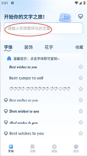 打开应用后,在首页的输入框里输入用户想要进行美化的文字。