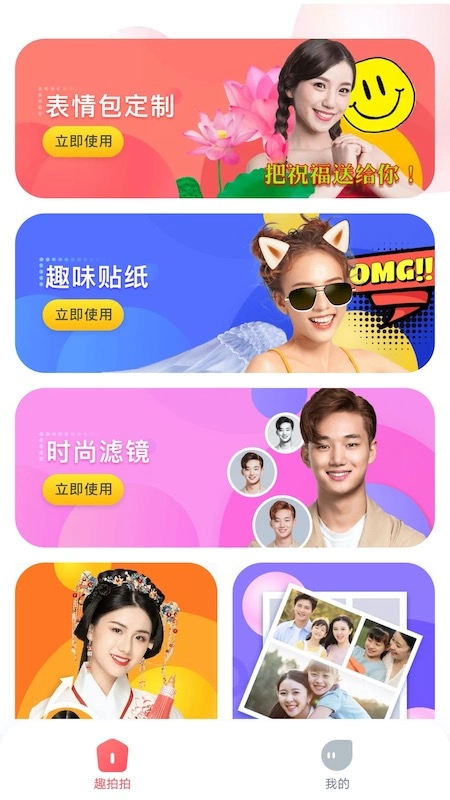 拥有各种特色功能,比如表情包定制、趣味贴纸、时尚滤镜、拼图等,在表情包定制中