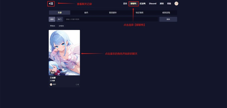 1、点击聊聊鸭,选择角色开聊,可查看聊天记录。