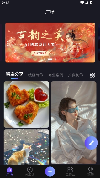 -多元创作模式:涵盖AI绘画、AI创作、AI视频创作等丰富类型,适配各类创作场景与需求。