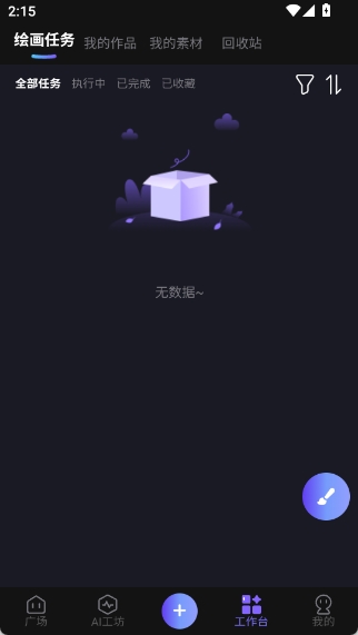 4、点击进入“工作台”,即可查看您的作品、素材等各类资源。