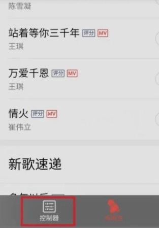 连接成功后,在点歌台里挑选想演唱的歌曲,接着点击下方的控制器。