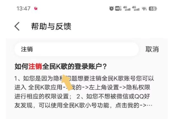 请点击进入帮助与反馈页面,然后利用搜索功能查找“注销”相关内容。具体操作可参考下图:
