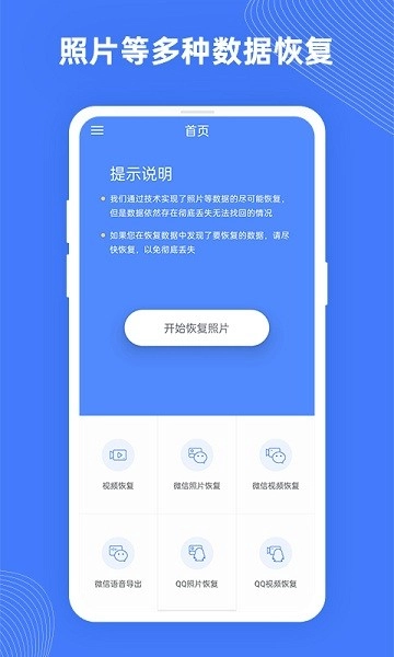 手机照片极速恢复是一款多功能数据恢复软件,能助力用户恢复手机照片与各类数据,涵盖手机视频、微信及QQ的照片和视频等内容的找回;还可协助用户导出微信语音文件,并支持恢复照片、视频的预览以及语音的播放功能,同时具备彻底删除照片、视频的能力。