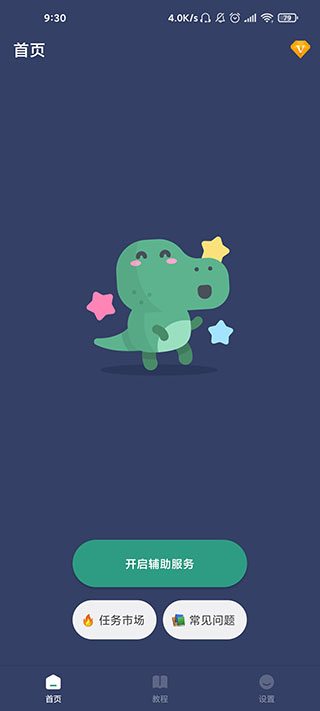 2、进入首页后将看到“开启辅助”以及“任务市场”等功能。