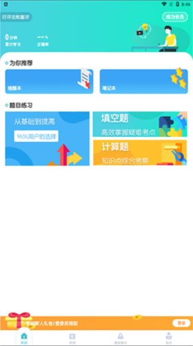 在本站安装初中化学大师后,首页会呈现错题本、笔记本、学习累计计时等功能。
