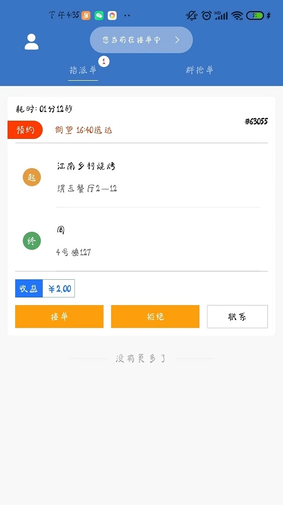 小马同学调度端能助力配送员更优地服务学生,配送员可在此完成订单的调转运达操作,为学生群体提供一站式服务。